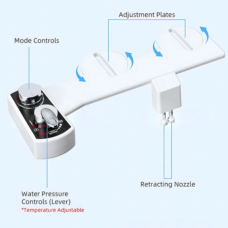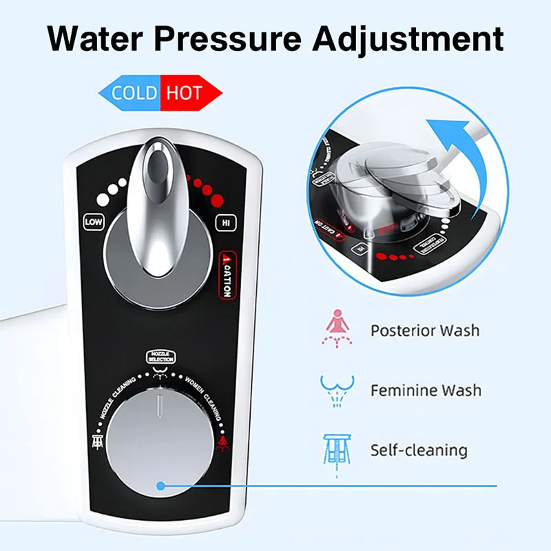 Enhance your bathroom experience with this ultra-slim hot and cold non-electric bidet attachment designed for superior hygiene and comfort. Featuring adjustable temperature control, it allows you to choose warm or cool water for a refreshing and personalized cleanse. The dedicated feminine wash function provides gentle yet effective cleaning, making it ideal for daily personal care. Its non-electric design operates solely on water pressure, ensuring energy efficiency, safety, and reliable performance. Crafted with durable, high-quality materials, this bidet is built for long-term use. The slim profile fits seamlessly under most toilet seats without affecting comfort or aesthetics. Easy to install with standard bathroom connections, it requires no special tools or plumbing experience. A practical, eco-friendly solution that reduces toilet paper use while promoting better hygiene for the whole household.