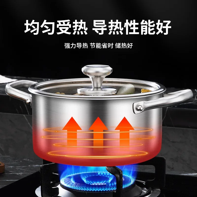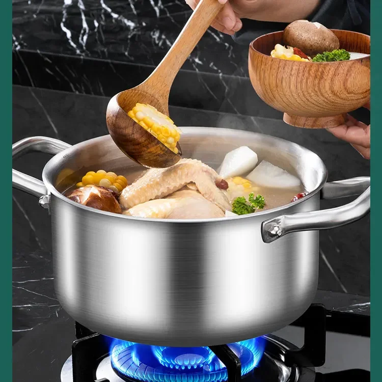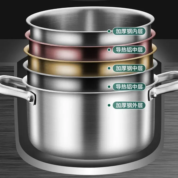 This stainless steel soup pot is designed for efficient, reliable cooking across modern kitchens. Made with high-quality 316 stainless steel, it offers excellent durability, corrosion resistance, and food-safe performance for everyday use. The five-layer thickened construction ensures fast, even heat distribution, reducing hotspots and improving cooking results. Compatible with electric induction cooktops and other heat sources, this pot delivers versatile performance for soups, stews, broths, and boiling tasks. The included lid helps lock in heat and moisture, enhancing flavor while conserving energy. Its sturdy structure resists warping even under high temperatures, making it suitable for long-term use. Easy to clean and maintain, the smooth metal surface supports hygienic cooking. Ideal for home kitchens, this soup pot combines strength, efficiency, and practicality in one essential cookware piece.